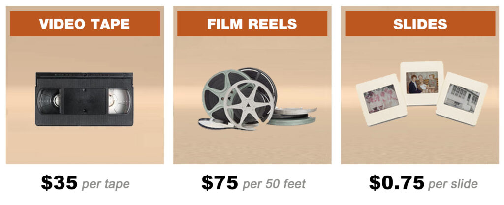 Select and click the "MEDIA CONVERSION". Choose the production option you want, then following instruction to pay for it. After you processed the payment, you will receive the email to tell you we are going to work on it. You will receive the email when done on it, email will also tell you a link to download the digital media that you can upload to your love one's memorial site. After complet, we mail you back the media material that you sent to us by UPS.